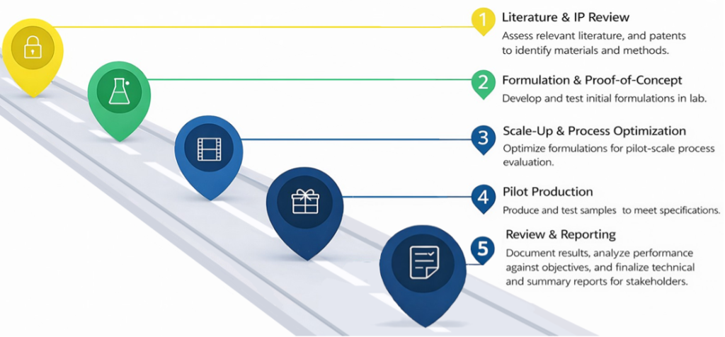 nanoparticles–based innovation, enabled by our in-house electrospinning platforms, prototyping tools, and material